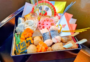 今年初のおせち料理を始めます。鯛の塩焼きを筆頭に手作り伊達巻!野菜の煮しめ!海老の塩焼き、サーモンの味噌焼き!
